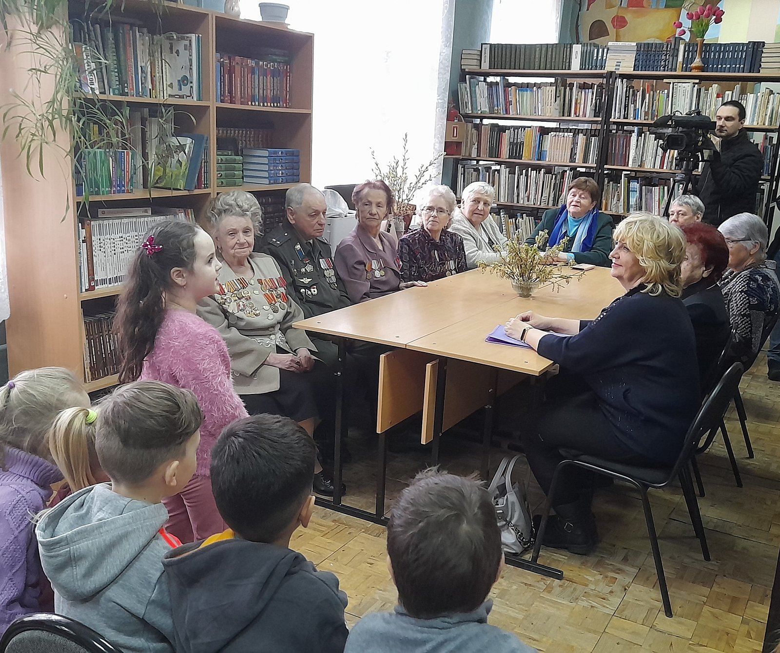 В преддверии Великого праздника Дня Победы воспитанники подготовительной группы «Улыбка» МБДОУ №36 г. Струнино посетили Центральную городскую библиотеку, где познакомились с удивительным миром книг, с историей родного города. Дети встретились с ветеранами, читали им стихи, пели песни, и слушали увлекательные истории. По окончании нашей встречи ребята поздравили ветеранов с Днём Победы, подарив открытки, сделанные своими руками. Детские работы и выступления тронули сердца всех присутствующих.