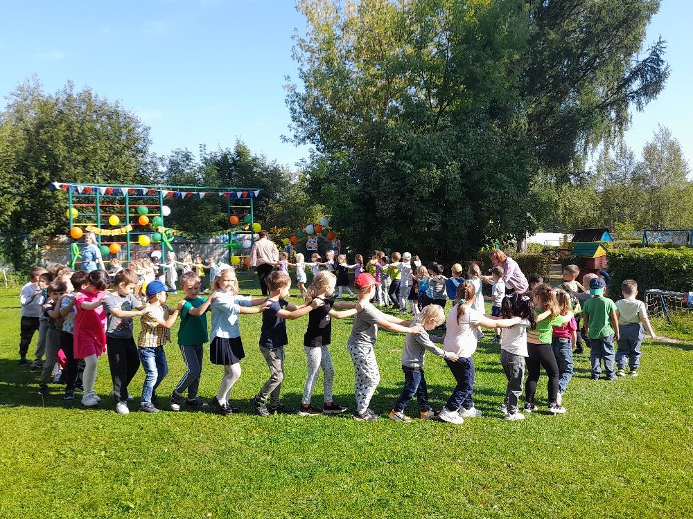 В этот день для воспитанников детского сада педагоги устроили настоящий праздник. В начале праздника была торжественная линейка, посвященная дню знаний. Затем дети участвовали в конкурсах, играх-соревнованиях, разгадывали загадки, шутили и смеялись. Вот так весело, интересно и празднично начался новый учебный год в нашем детском саду.