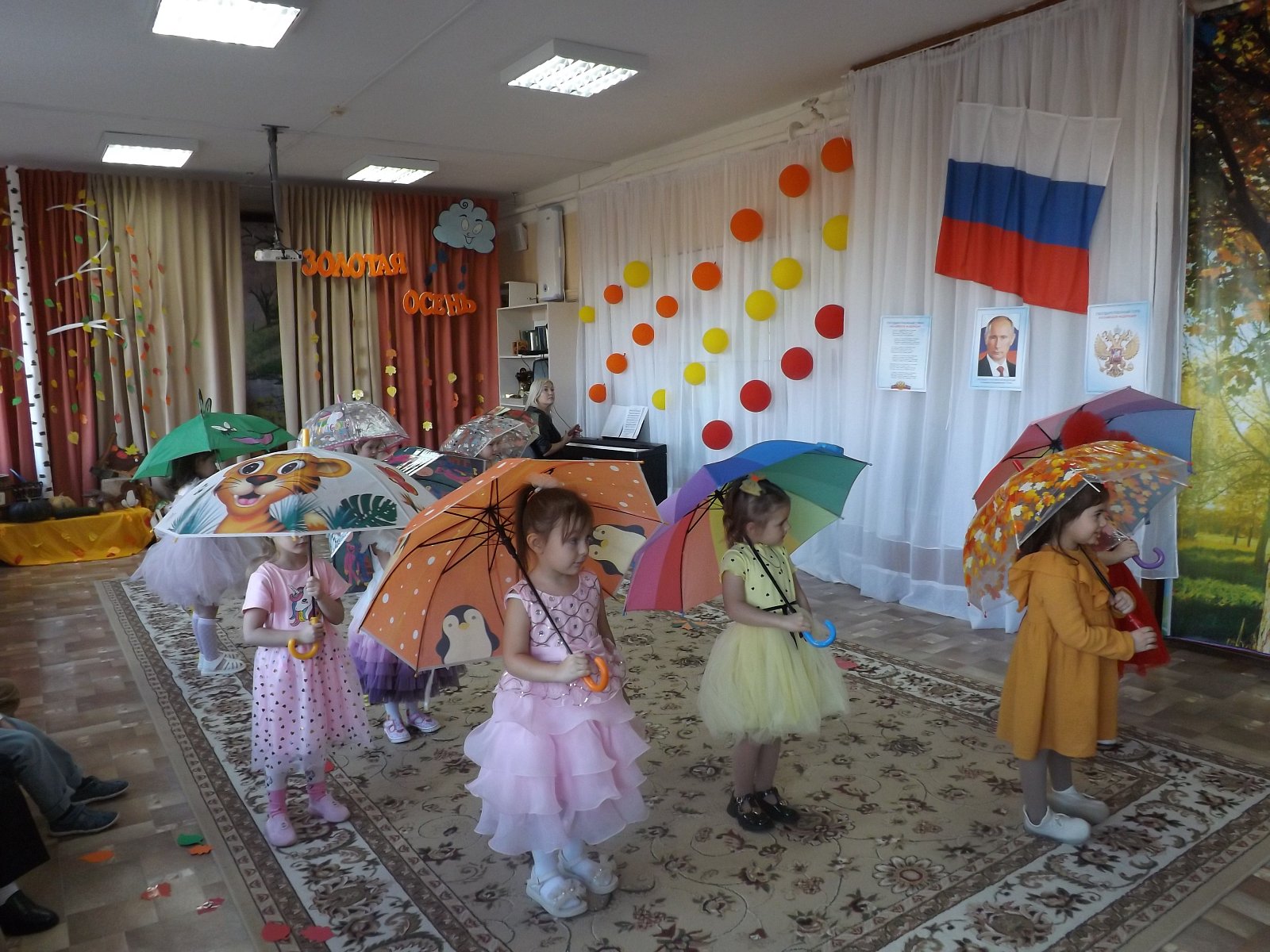 26 октября состоялись осенние праздники в Младших и Средней группах: "Осенью у всех забота", "Осенняя полянка" и "Волшебный зонтик Осени".