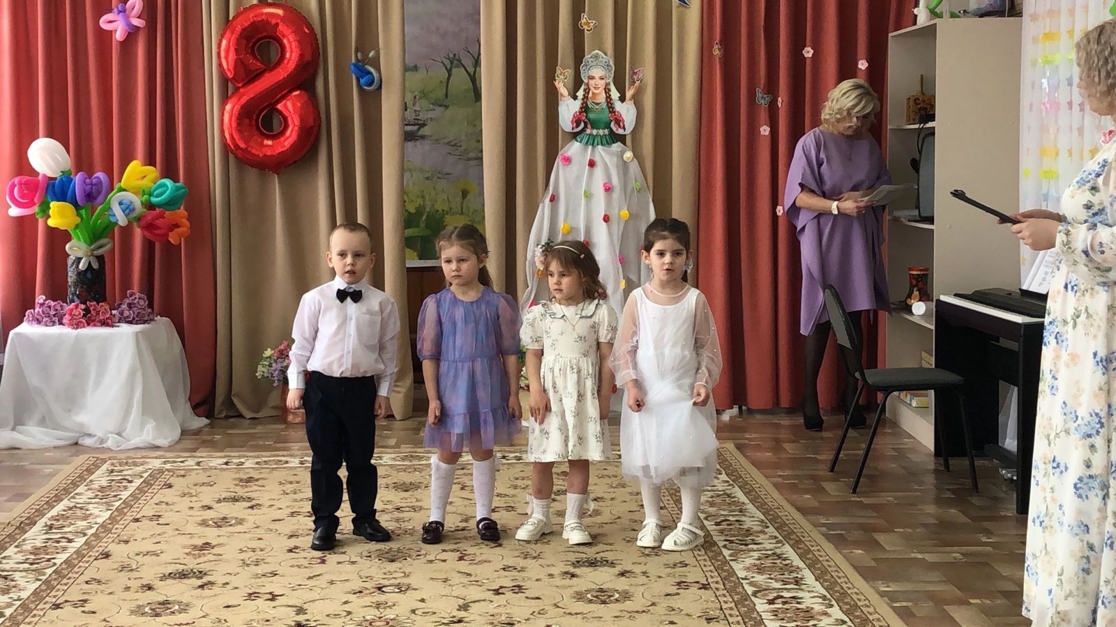 Наши юные артисты радовали своими талантами и выступлениями. Ребята исполняли весенние песни, стихи, задорные танцы и подготовили небольшие театрализованные постановки, приуроченные к этому прекрасному дню.