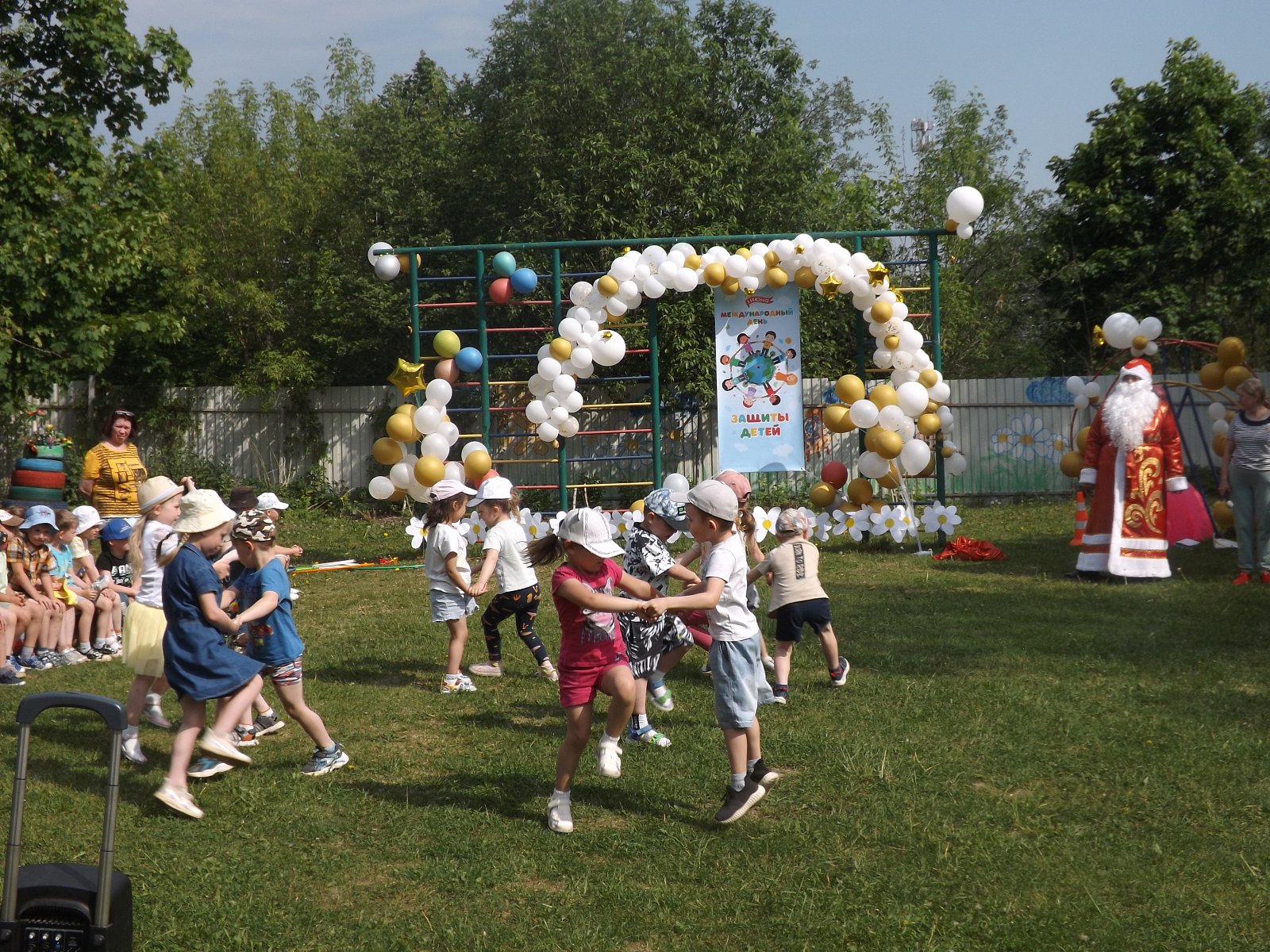 В нашем ДОУ 30 мая прошло праздничное мероприятие под названием «Дед Мороз и лето». В праздничной программе приняли участие все возрастные группы детского сада. Танцы, песни, игры, шутки и смех звучали на празднике. Особую атмосферу создавали Дед Мороз и Баба Яга!