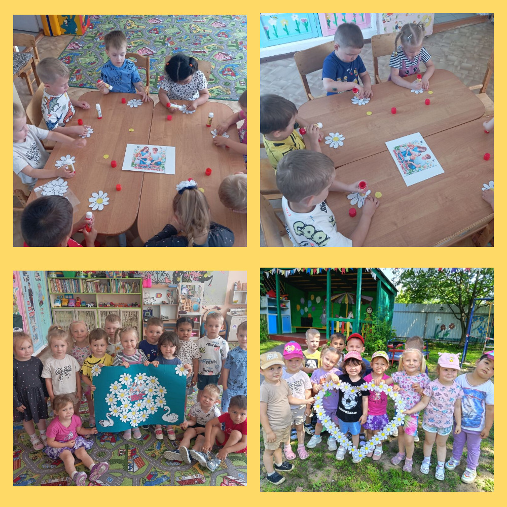 А самое интересное занятие, которое увлекло детей – это изготовление символа праздника – ромашки. Дети очень старались и все ромашки разместили на рамке для фотосессии. Дети верят, что ромашка волшебная и будет исполнять желания.